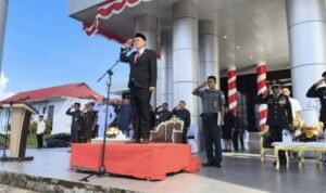 Bupati Kepulauan Sitaro, Chyntia Kalangit memimpin apel kerja bersama yang dirangkaikan dengan kegiatan kerja bakti massal di kawasan kolam renang Zwembad, Kelurahan Akesimbeka, Kecamatan Siau Timur, Jumat (13/6/2025).
