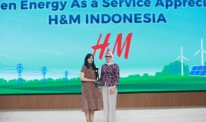Penyerahan penghargaan kategori Green Energy As a Service Appreciation oleh Direktur Distribusi PLN, Arsyadani G. Akmalaputri (kanan) kepada Manager Sustainability & Environment H&M, Hapsari Saraswati (kiri).(*)