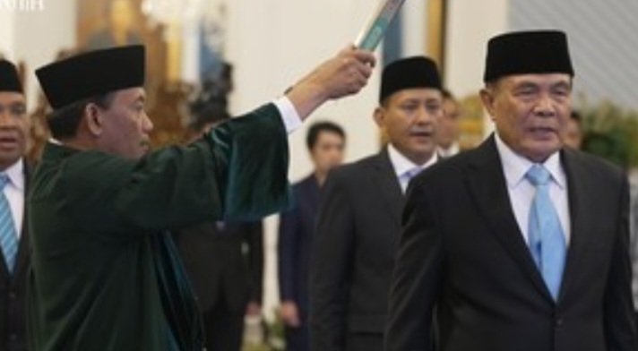 ONLINEBRITA.COM, JAKARTA – Presiden RI Prabowo Subianto melantik Djamari Chaniago jadi Menteri Koordinator Politik dan Keamanan (Menko Polkam) di Istana Negara, Jakarta, Rabu (17/9) sore. (Sekretariat Presiden)