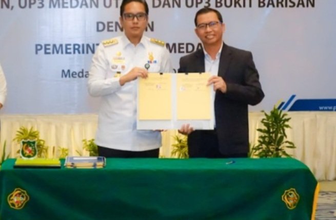 Penandatanganan dilakukan langsung oleh Wali Kota Medan, Rico Tri Putra Bayu Waas bersama Manager PLN UP3 Medan, Edy Saputra, Manager PLN UP3 Medan Utara, Hiro Pingkir Pardede, dan Manager PLN UP3 Bukit Barisan, Ramses Hutajulu di Hotel Aryaduta Medan, Rabu (1/10/2025).