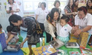 Bunda PAUD Anik Julius Stevanus didampingi Kadis Pendidikan Daerah Sulut Dr Femmy Suluh MSi, Kadis Pemberdayaan Masyarakat Desa Provinsi Sulut Darwin Maksin SSos MM, dan Kepala BPMP Provinsi Sulut Dr Febry Dien ST MInf Tech (Man).