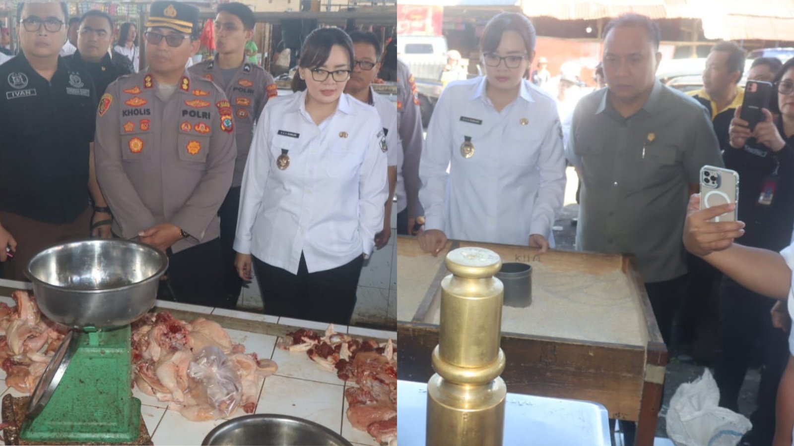 Foto: Wakil Wali Kota Tomohon Sendy Rumajar bersama unsur Forkopimda dan Tim Pengendali Inflasi Daerah, lakukan Inspeksi Mendadak (Sidak) di Pasar Beriman Kota Tomohon.