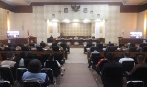 Rapat Paripurna ini dipimpin oleh Ketua DPRD Kota Tomohon Ferdinand Mono Turang SSos didampingi Wakil Ketua DPRD Kota Tomohon Donald Pondaag, di ruang sidang DPRD Tomohon.