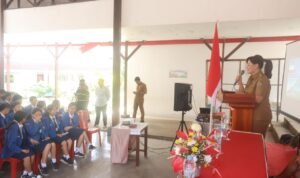 Foto: Wakil Wali Kota Tomohon Sendy Gladys Adolfina Rumajar SE MIKom membuka kegiatan Soaialisasi, di SMP Negeri 1 Tomohon.