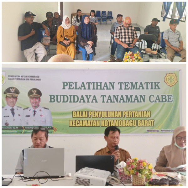 ONLINEBRITA.COM, KOTAMOBAGU – Balai Penyuluhan Pertanian (BPP) Kecamatan Kotamobagu Barat kembali menunjukkan komitmennya dalam meningkatkan kualitas sumber daya manusia di sektor pertanian melalui pelatihan tematik tanaman cabe. Kegiatan yang dilaksanakan di Kantor BPP Kotamobagu Barat ini diikuti para petani anggota kelompok tani dari berbagai kelurahan