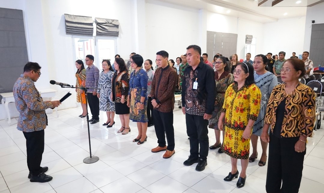 Bertempat di Media Center Pemkab Sitaro, Kamis (27/11/2025) Wakil Bupati Kepulauan Sitaro, Heronimus Makainas S.E, mengukuhkan Pengurus dan Anggota Forum Kerukunan Umat Beragama (FKUB) periode 2025–2030.