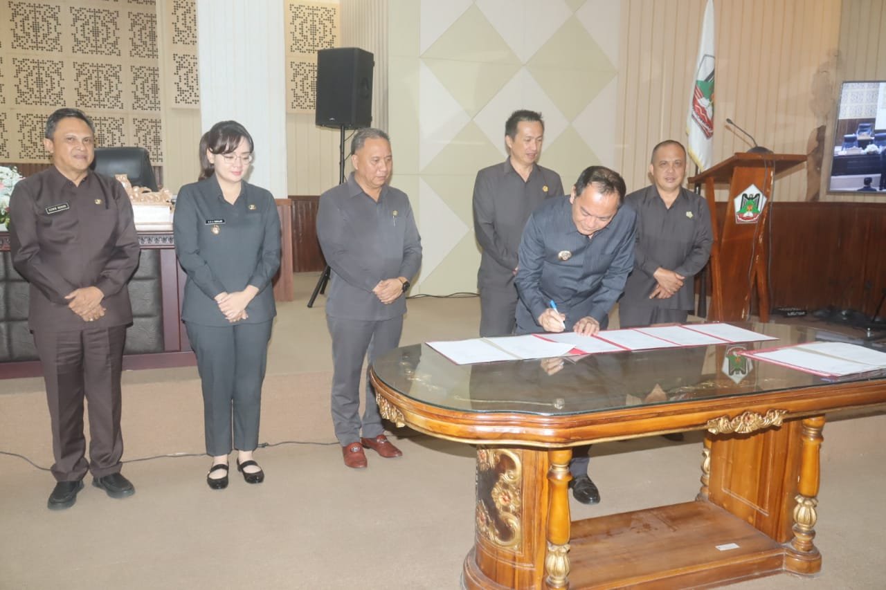 Wali Kota Tomohon bersama Pimpinan DPRD Kota Tomohon menandatanganani Ranperda tentang APBD Kota Tomohon Tahun Anggaran 2026 dan Penetapan Program pembentukan Peraturan Daerah Kota Tomohon tahun 2026