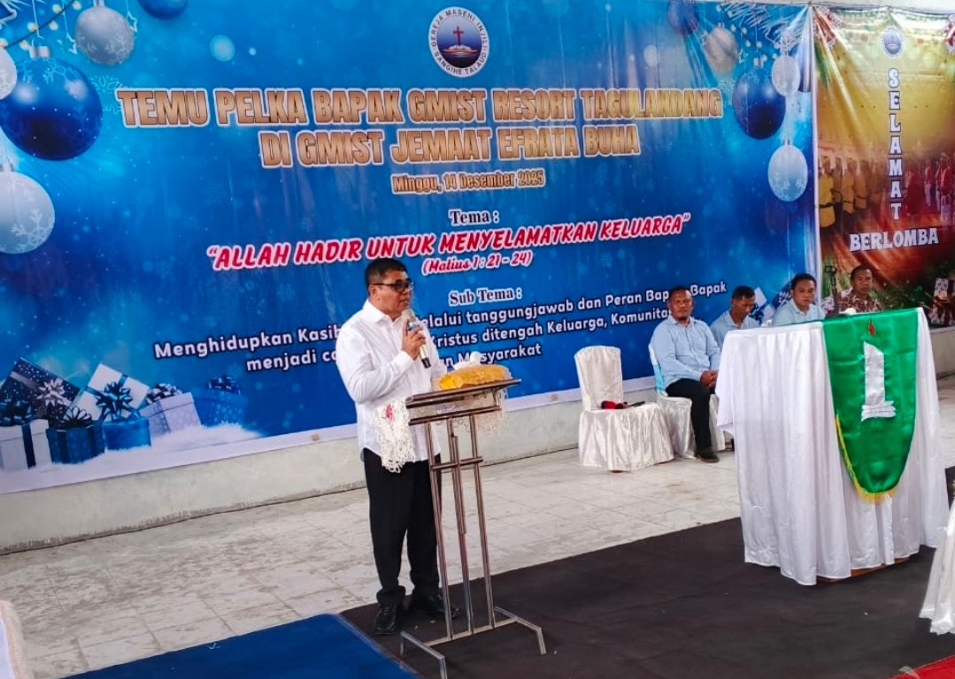 ONLINEBRITA.COM,SITARO– Wakil Bupati Sitaro, Heronimus Makainas, S.E, menghadiri Perayaan Natal Bersama Temu Pelka Laki-laki GMIST Resort Tagulandang di Jemaat Efrata Buha, Minggu (14/12/2025).