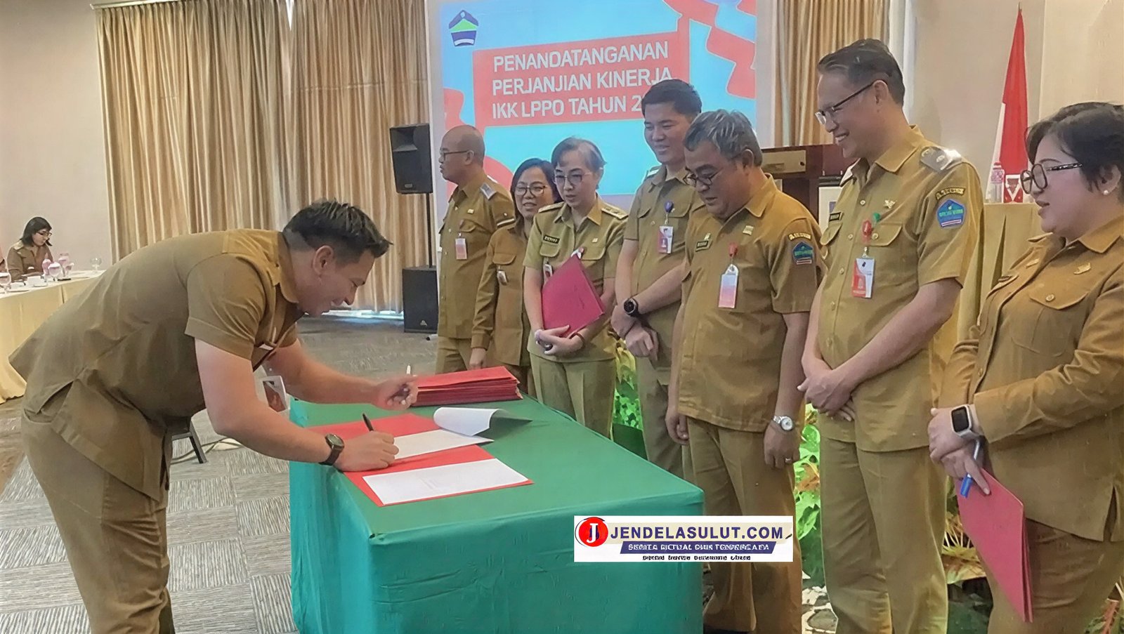 Satu per satu pejabat tinggi pratama, mulai dari kepala dinas, badan, hingga satuan kerja perangkat daerah (SKPD) di lingkungan Pemerintah Kabupaten Minahasa Utara (Pemkab Minut), maju menandatangani dokumen yang telah disiapkan.